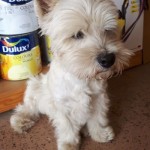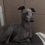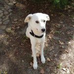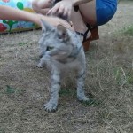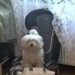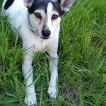 Nieduży, biały w czarne łaty. Wysokość do kolana. Przyjacielski, ale trochę lękliwy. Boi się innych psów. Nie lubi wody, w sensie pływania, wchodzenia do jeziora.
