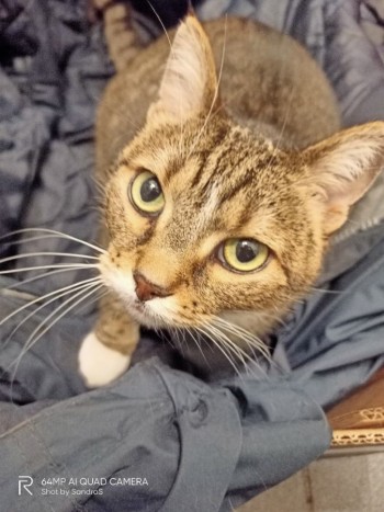 kot schował się pod maską w samochodzie u znajomej, zorientowała się na stacji paliw, kiedy z mężem dolewali płynu do spryskiwaczy kot jest zadbany, bez pcheł, musiał być kastrowany, bo ma delikatnie przycięte uszko na wszystkich 4 łapkach ma białe skarpeteczki przyjazny i ufny do ludzi, sam wyszedł spod samochodu na podjeździe stacji, gdy się go zawołało