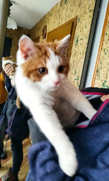 Kot w wieku około pół roku, samiec, niekastrowany, maści biało-rudej. Do odbioru w Lecznicy dla zwierząt przy ul. Dąbrowskiego 15 w Iławie