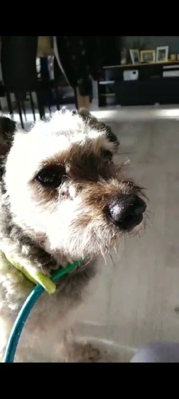 psiak się komuś zgubił jest ogolony i kolorów szarych
