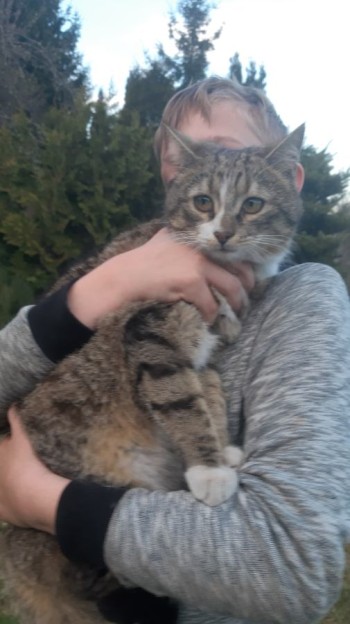 Szara z białymi plamami, znaleziona na działkach ROD Millenium (bardzo oswojona)