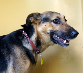 średnia, czarna podpalana, krótkowłosa, młoda, po sterylizacji.