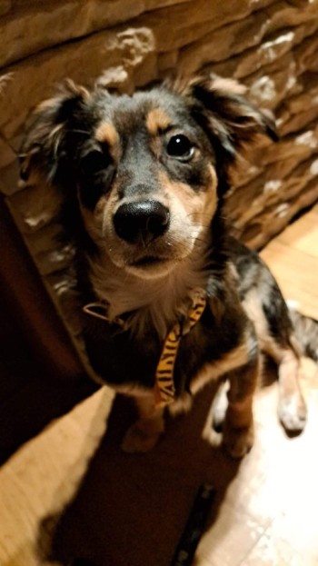 Mała suczka, podpalana z białym kolorem. Około 9 kg.