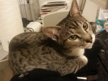 udomowiony, z charakterystyczną łatką na lewej tylnej łapce, znaleziony na Ołtaszynie