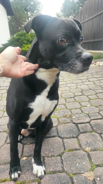 czarny, krótkowłosy z białymi latkami na torsie