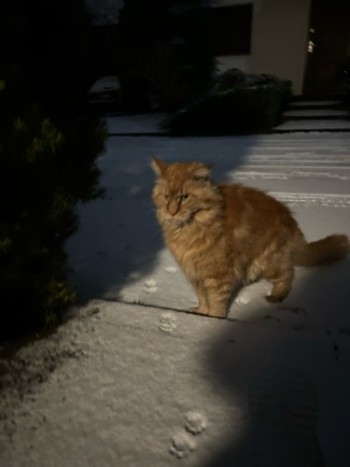 Rudy, dlugowlosy, duzy, prawdopodobnie starszy, chudy, bardzo przytulasny i łagodny, jasne bursztynowe oczka