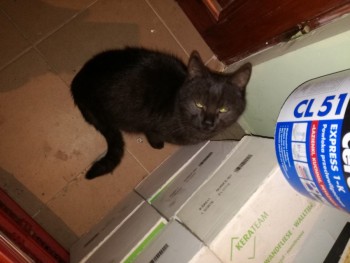 Kot cały czarny, oczy zielone, małe uszy, płeć bd