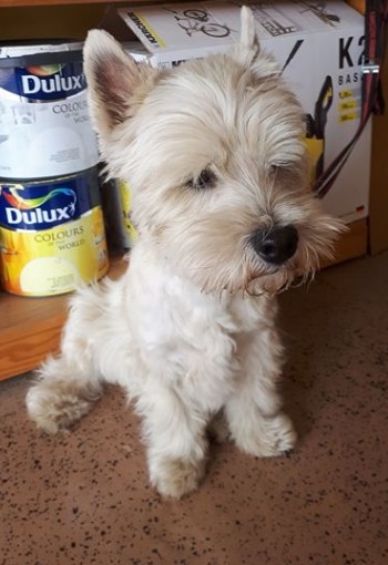Piesek strzyżony, chyba uciekł parę dni temu bo trochę głodny.