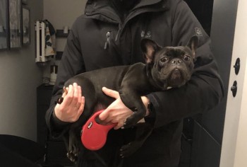 Black, small. Without dog collar. I haven't checked but it's rather a female.